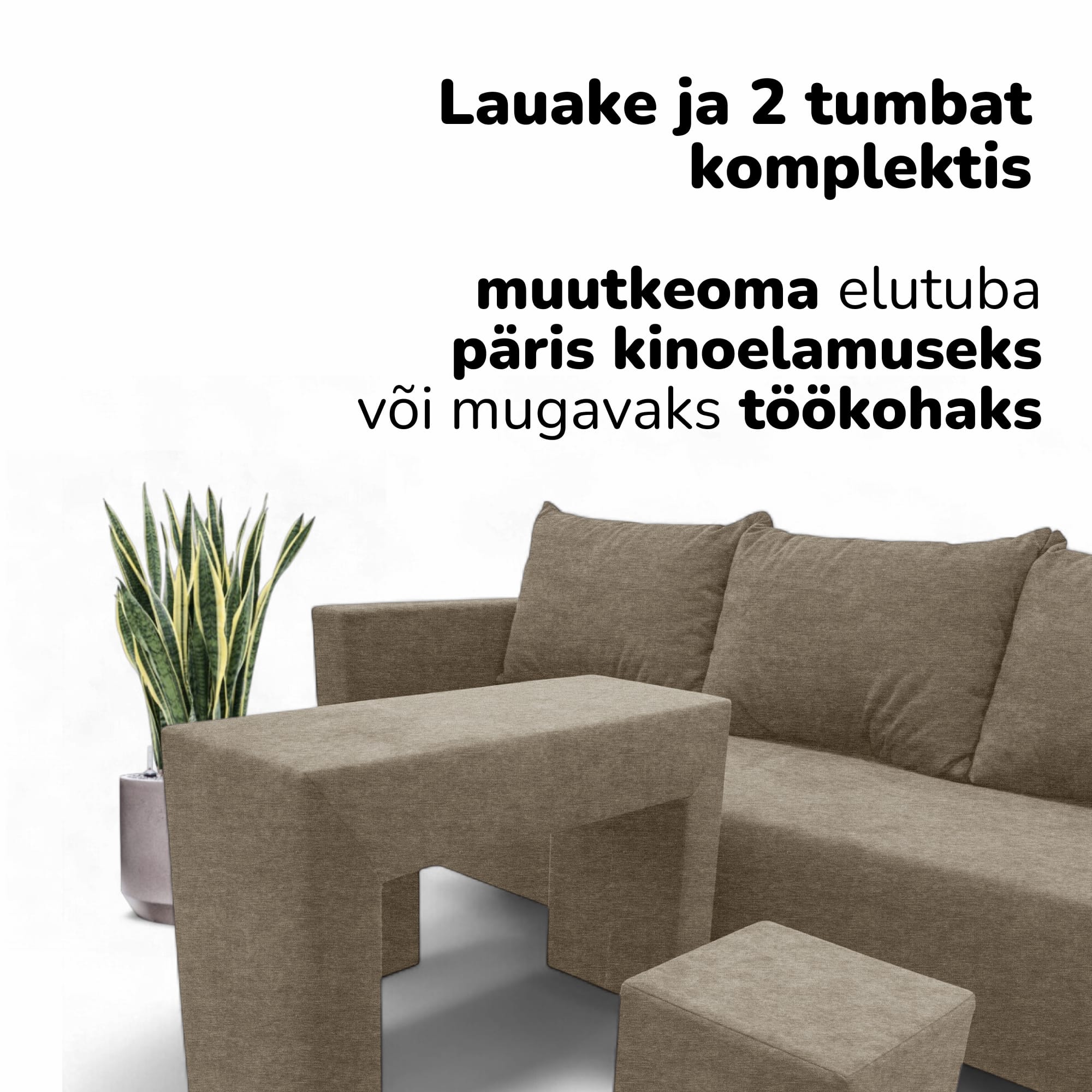 KAHEKOHALINE LAHTIKÄIV DIIVAN LAUAKESE JA TUMBADEGA COMBO