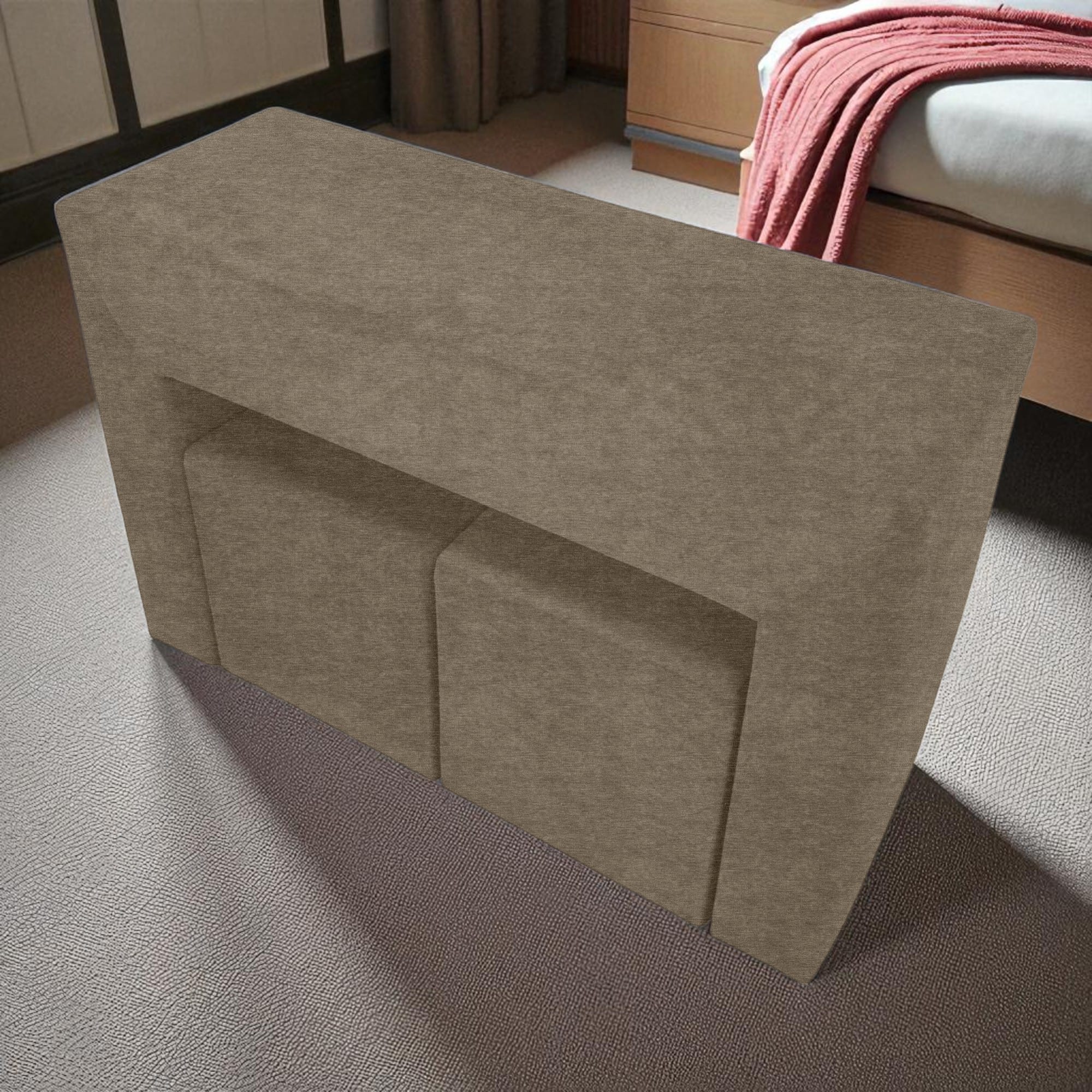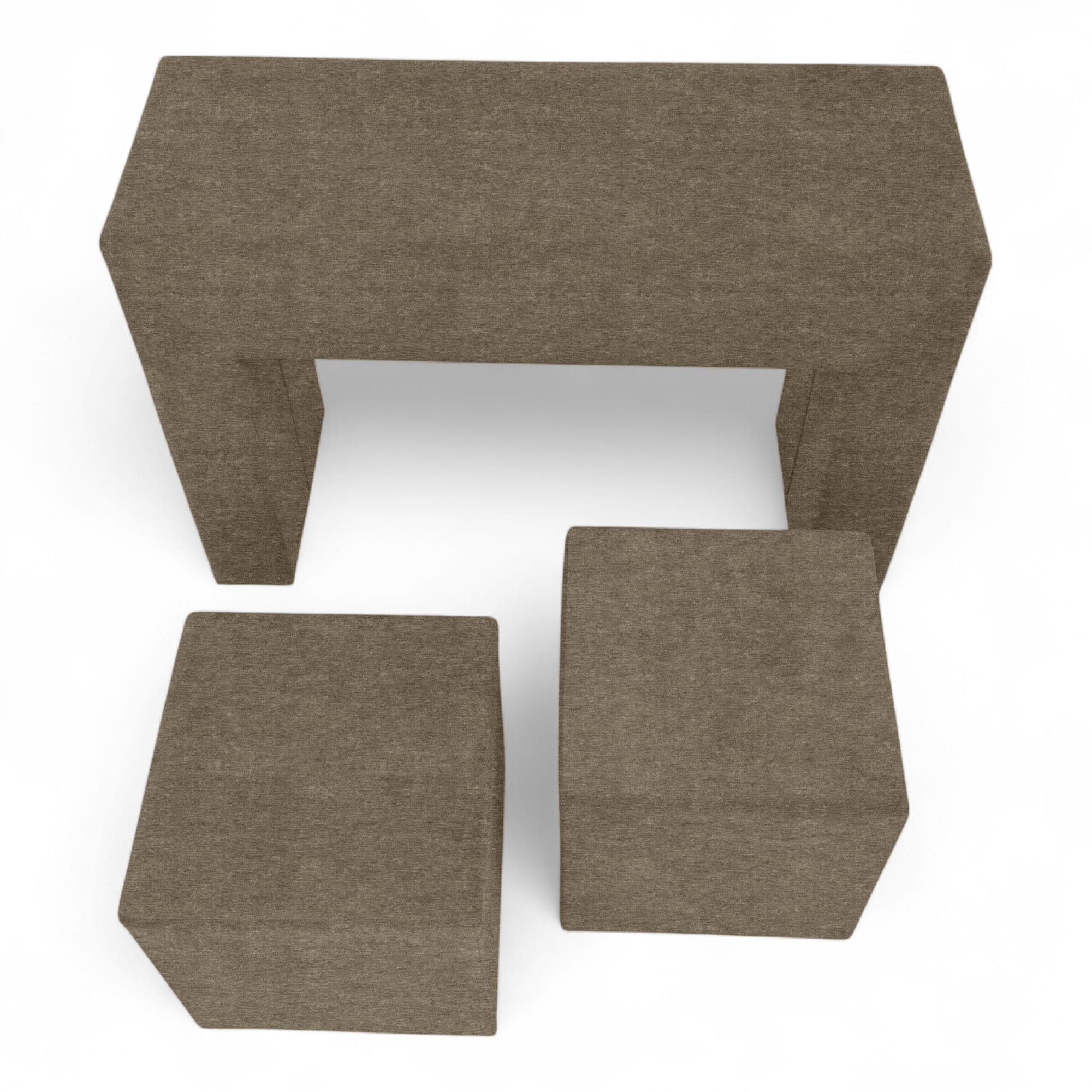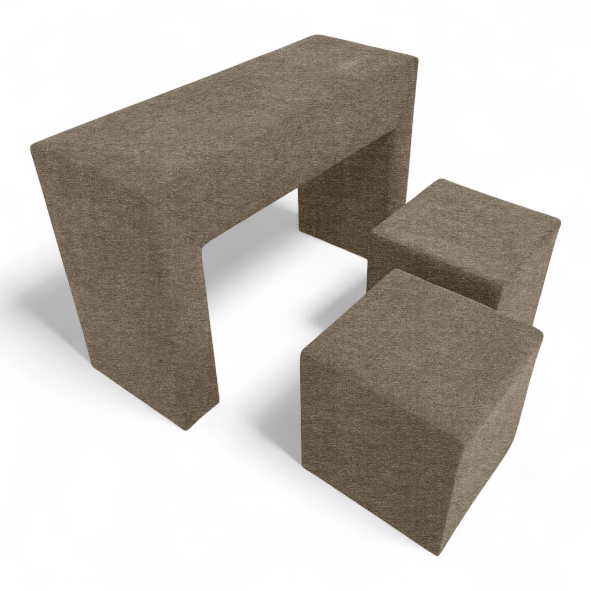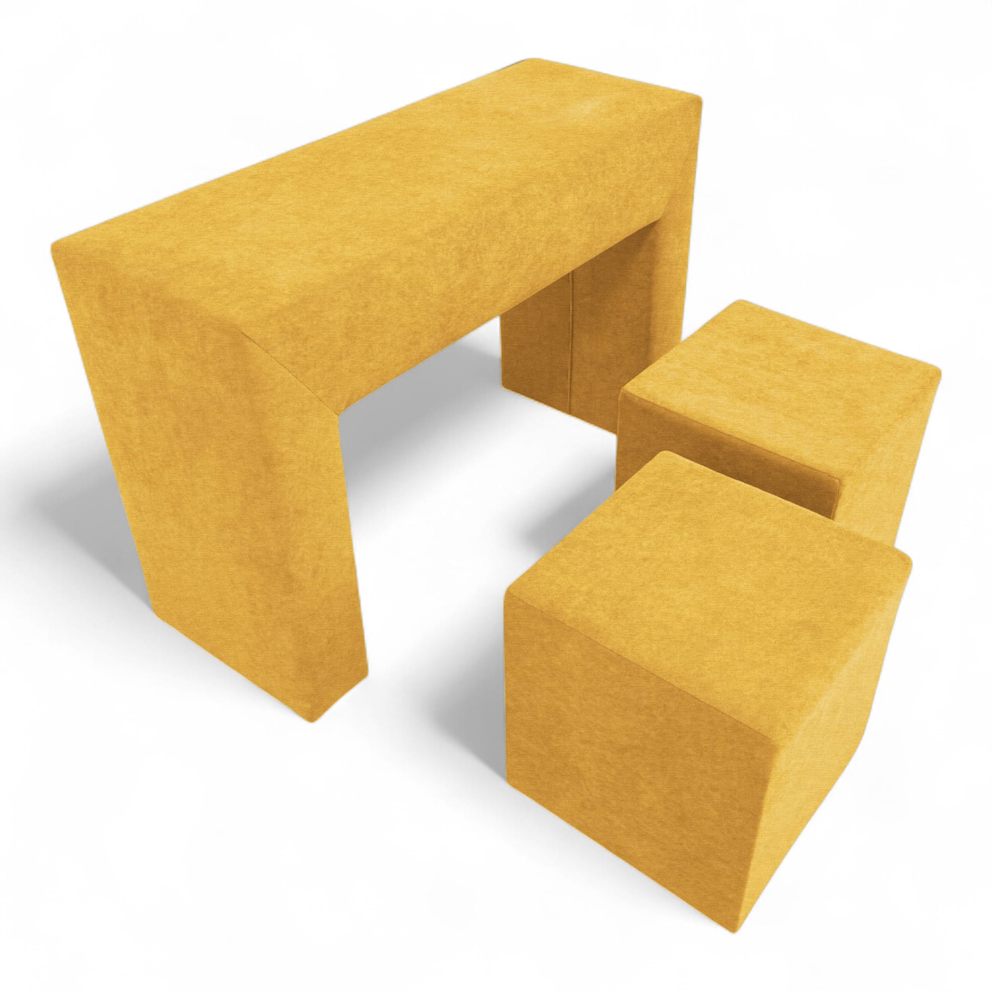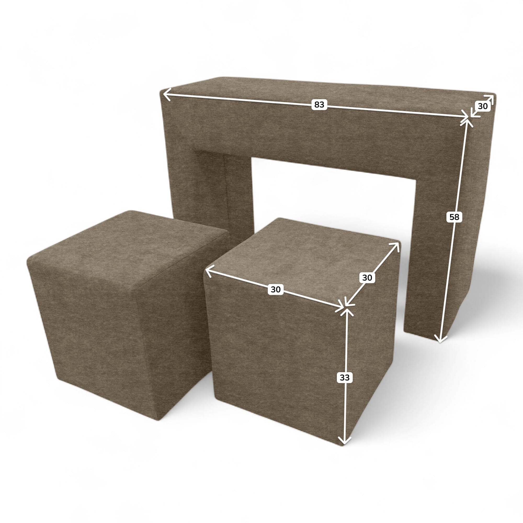 Komplekt „Käetugedega laud ja kaks tumbat“ on mitmekülgne ja stiilne lisa igale diivanile. Seda saab kasutada täismõõdus kohvilauana, lisapanipaigana, istumisnurgana või isegi käetoena, muutes diivani mugavaks istumisnurgaks. Tumbad mahuvad hõlpsalt laua sisse, luues kompaktse ja funktsionaalse disaini. Raam on valmistatud vastupidavast puitplaadist ja vineerist, mis on kruvitud kokku lisatugevuse ja vastupidavuse tagamiseks. Täiteainena on kasutatud suure tihedusega mööblikvaliteediga polüuretaanvahtu – see hoiab hästi oma kuju ega vaju aja jooksul läbi. Polster on valmistatud kvaliteetsest veluurist – pehme puudutusega, kulumiskindel (35 000 tsüklit Martindale’i testi järgi), kergesti hooldatav ja keskkonnasõbralik. Värvivalikud igale maitsele: beež, pruun, kollane, türkiissinine roheline, helehall ja grafiit. Selle kompaktne suurus, minimalistlik disain ning lihtne hooldus ja kokkupanek muudavad selle komplekti mitmekülgseks lahenduseks elutuppa, lastetuppa, kööki, magamistuppa või kontorisse. Praktilisus, kohanemisvõime, plekikindlus ja mõistlik hind pakuvad tõeliselt parimat hinna ja kvaliteedi suhet. Puhastamine on lihtne õrna seebilahusega.