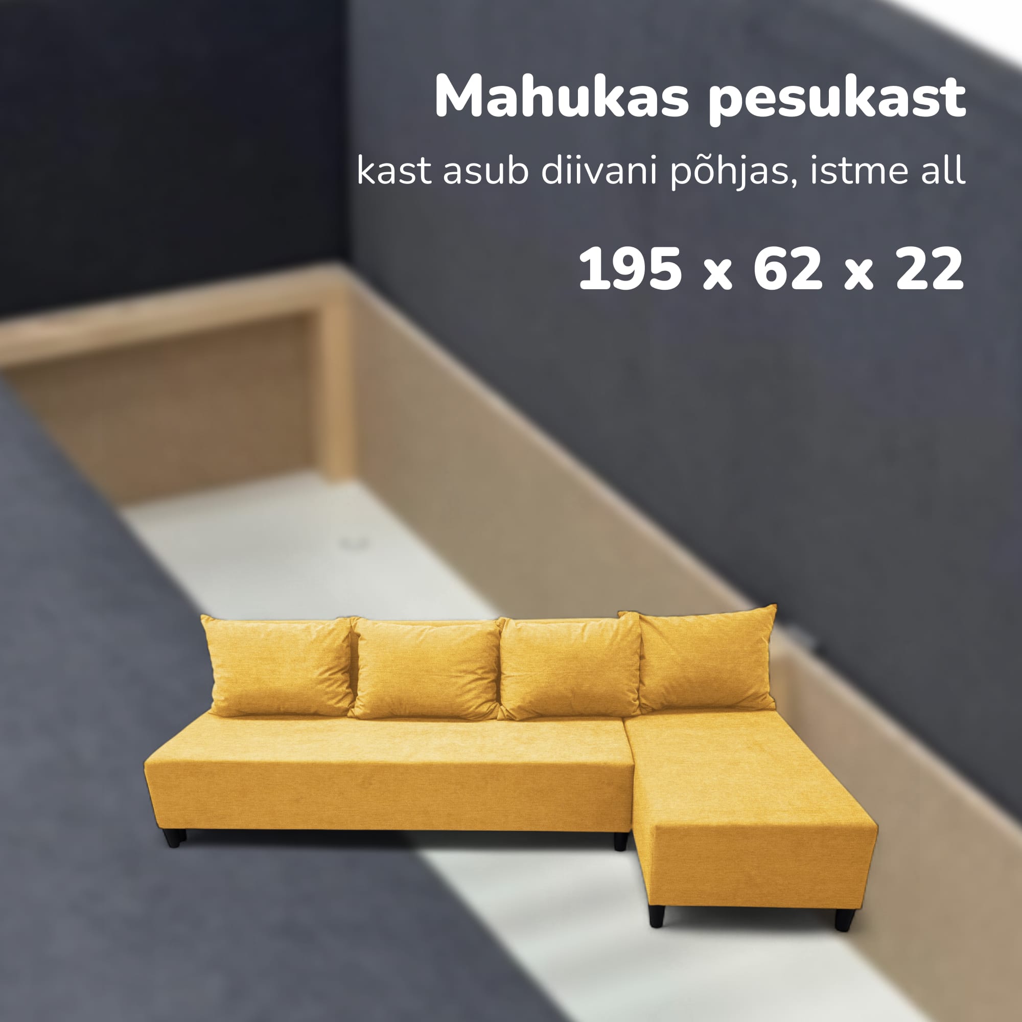 See käetugedeta nurgadiivanvoodi on mitmekülgne lahendus nii väikestele korteritele kui ka moodsale interjöörile. Selle mitmekülgne nurgadisain võimaldab seda konfigureerida nii vasaku- kui ka paremakäeliseks, mistõttu sobib see ideaalselt igasse ruumi. See muutub kergesti täismõõdus voodiks ja sisseehitatud sahtel võimaldab mugavalt hoiustada voodipesu ja muid esemeid. Raam on valmistatud ülitugevast puitplaadist ja vineerist. Kõik ühendused on kruvitud, mis tagab täiendava töökindluse ja pika kasutusea. Täiteainena on kasutatud suure tihedusega polüuretaanvahtu, mis taastab kiiresti oma kuju ja pakub mugavust nii istumisel kui ka magamisel. Polster on valmistatud tihedast veluurist – keskkonnasõbralikust, hingavast ja pehmest materjalist. Seda on lihtne puhastada ja see on kulumiskindel, nagu kinnitab Martindale’i test (35 000 tsüklit). Mudel on saadaval laias värvivalikus: beež, pruun, kollane, türkiissinine roheline, helehall ja grafiit. Diivani moodne ja ergonoomiline disain sobib elutuppa, magamistuppa, kööki, kontorisse või lastetuppa. Selle funktsionaalsuse hulka kuuluvad keskmine kõvadus, plekikindlus, lihtne hooldus, kompaktne suurus, keskkonnasõbralikkus, lihtne kokkupanek ja suurepärane hinna ja kvaliteedi suhe. See on praktiline ja stiilne lahendus neile, kes hindavad mugavust ja mitmekülgsust. Hooldus on lihtne: eemaldage plekid seebiveega ringjate liigutustega.